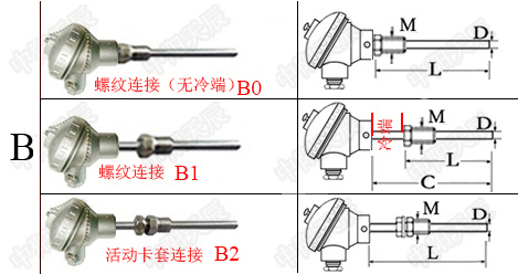 B0=螺纹连接,无冷端 B1=螺纹连接,有冷端